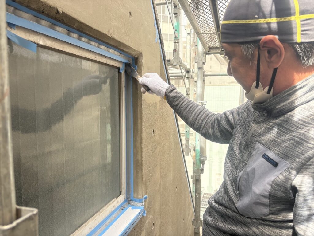 コンクリート打ち放しにおけるシーリング材は超耐シーラーを使用しています。