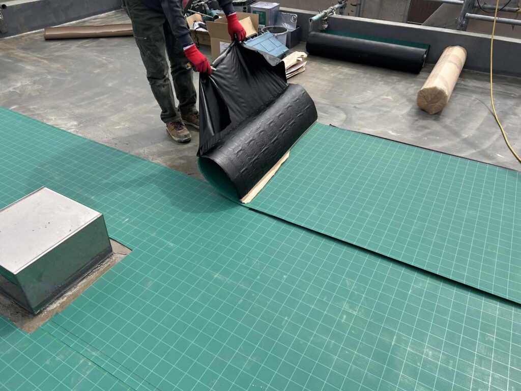 通気緩衝シートを貼ることで、膨れや揺れによる膨れを防ぐことが出来、長期の意健全な防水層を維持することが出来ます。