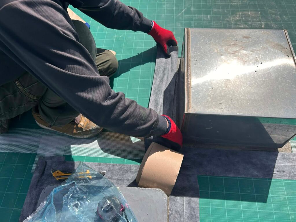 通気緩衝シートとは、防水下地の水分を通気緩衝シートを通し、脱気筒から脱がすことで防水層の膨れや剥がれなどの不具合を防ぐ高度な防水工法です。