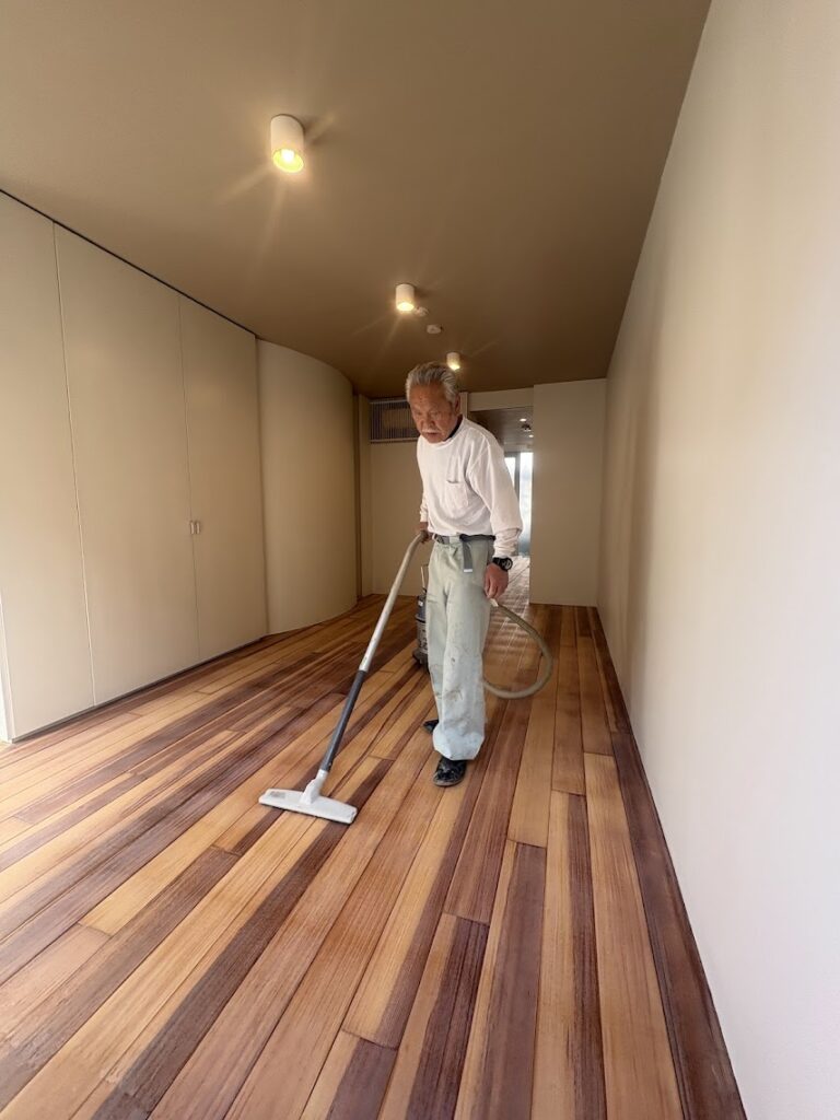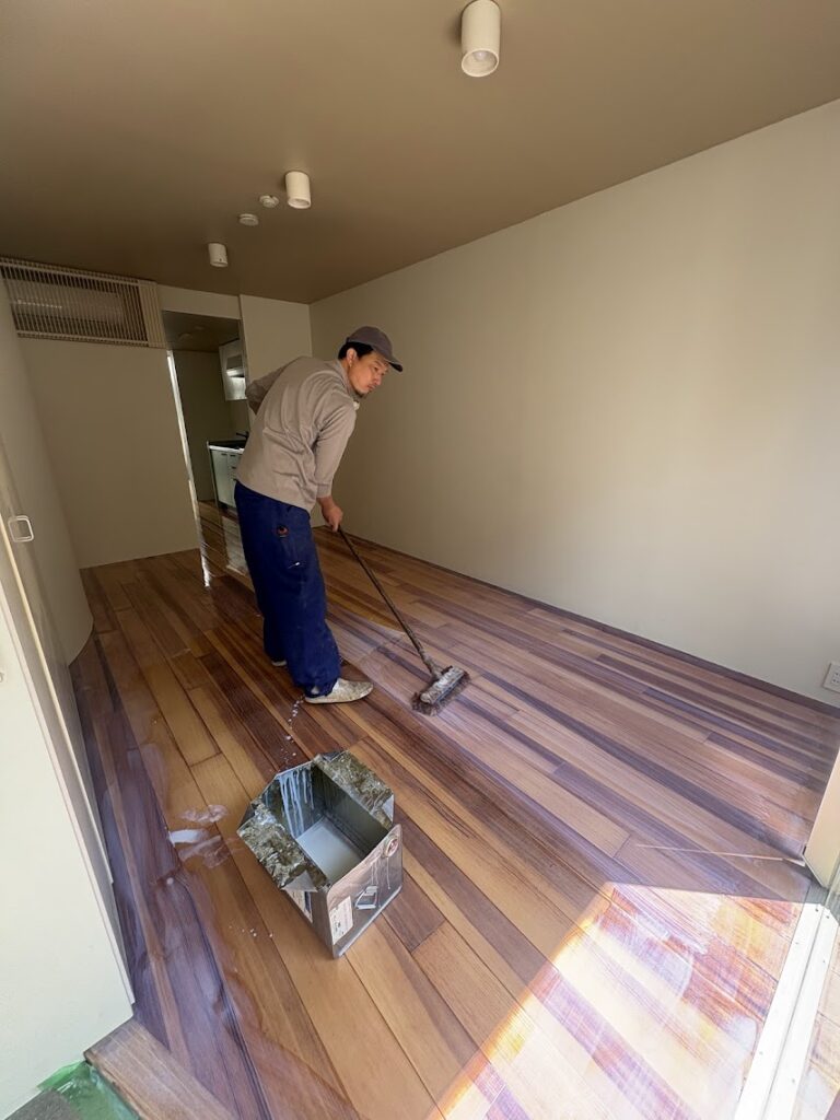 無垢フローリング水性ウレタンクリアーチップコート